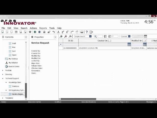 Service Request Registration System (SRRS) is Aras Innovator® 10.0 based system that allows Technical support personnel to register and manage service requests coming from customers.